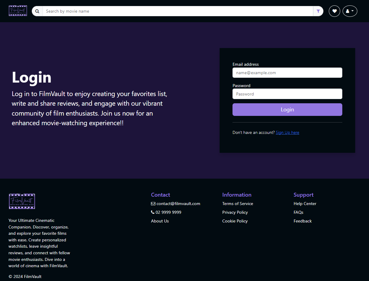 FilmVault presents a user-friendly platform where users have access to various movies of all time. The website will give users all movie essential information, reviews, ratings, and trailers, all in one centralized location.